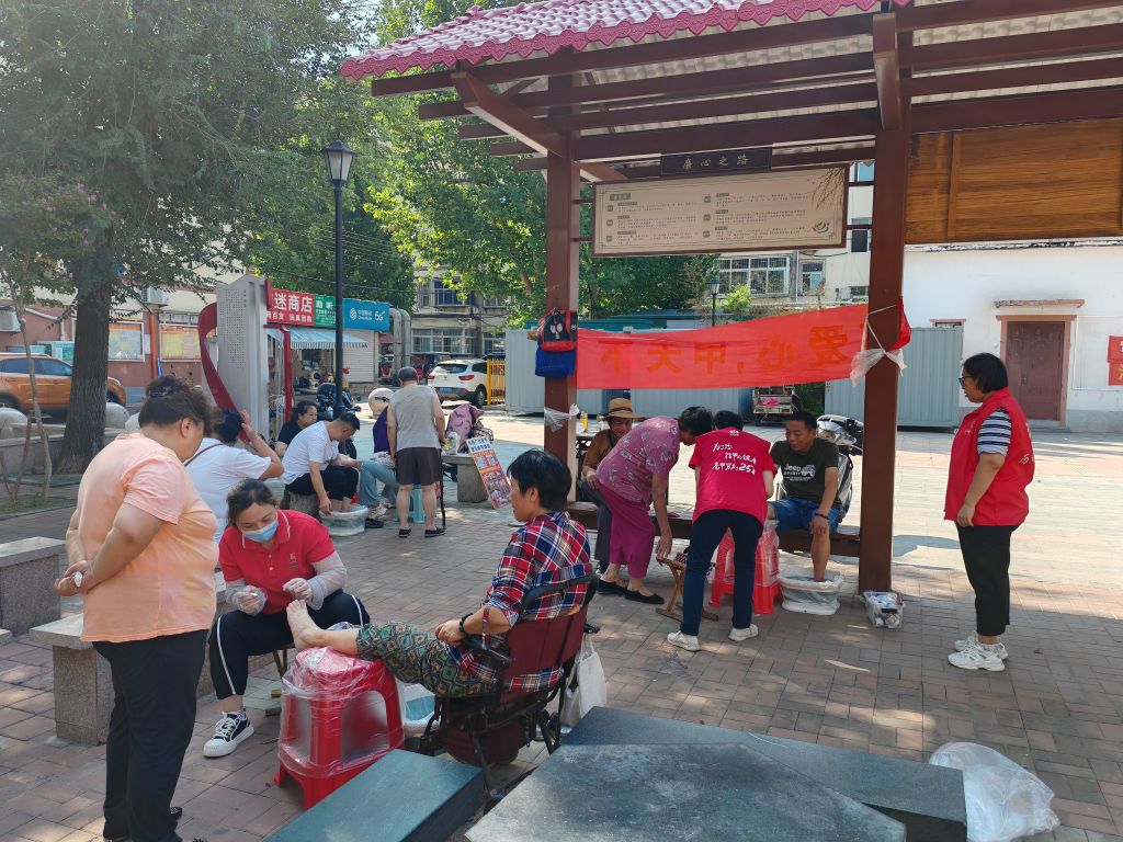 为了弘扬尊老、爱老、助老的传统美德,关注社区老年人的身体健康。9月4日上午,山大路街道社工站联合甸柳社区邀请亮甲修甲师在甸柳社区小广场开展社区老年人公益浴足活动。