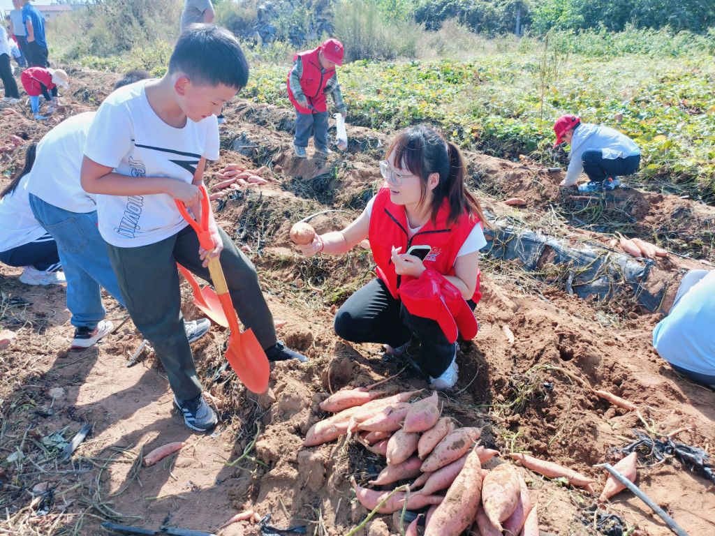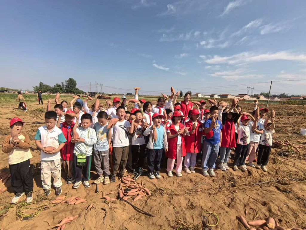 第二站,到达吕小庄村农产品种植基地采挖蜜薯。怀揣着满心的期待,与田间的蜜薯来一场秋日丰收的邂逅,孩子们运用各自的挖蜜薯技巧,使用小铲子耐心、细心地挖掘,充分体验着农事劳动的乐趣。