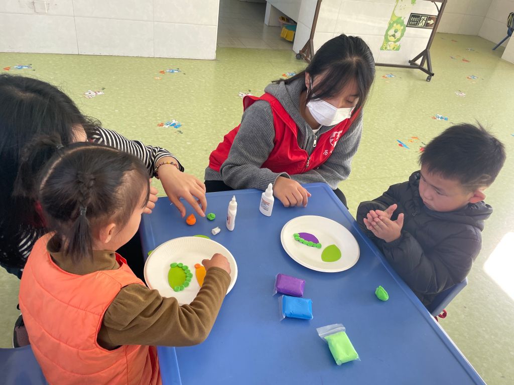 手势舞表演结束后,活动进入了手工制作环节——创作会“跳舞”的水饺。社工们为孩子们分发了纸盘、画笔、粘土、胶棒以及卡纸剪成的饺子形状等材料。在PPT展示的成品作品的启发下,孩子们充分施展自己的想象力与创造力,亲手制作出一件件别具特色的水饺作品。整个活动过程中,孩子们的欢声笑语不绝于耳,现场洋溢着欢乐与温馨的气息。