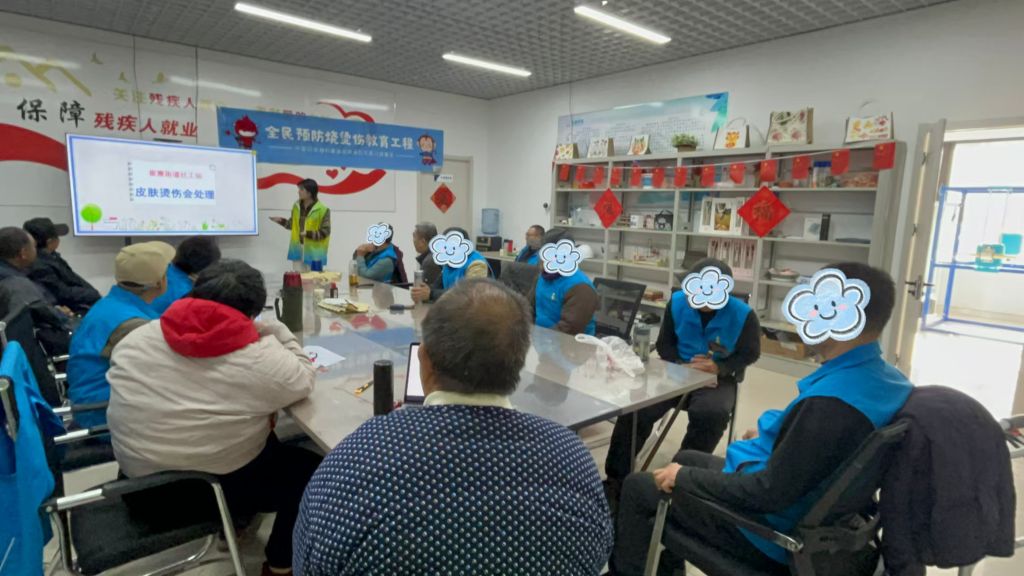 在知识讲解环节,社工借助精心制作的PPT,用通俗易懂的语言、生动的图片和真实案例,深入浅出地讲解烧烫伤的相关知识。残疾朋友们全神贯注,眼神中透露出对知识的渴望。张叔虽然行动不便,但始终目不转睛地盯着屏幕,不时点头表示理解。当讲到厨房做饭可能存在的烫伤风险时,不少残疾朋友都积极回应,结合自身经历讲述在厨房中遇到的困难和惊险瞬间,现场互动频繁。
