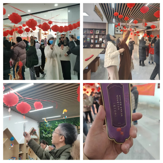 活动现场,红灯笼高挂,谜题纷呈,居民们热情高涨,纷纷参与到这场趣味十足的猜灯谜活动中来。一道道谜面挂在灯笼上,大家三五成群地讨论、推理,欢声笑语不断。在猜灯谜的过程中,居民不仅体验了中华优秀传统文化,锻炼了思维能力,还增加了彼此之间的互动和沟通,增进了邻里情谊,促进了社区和谐。