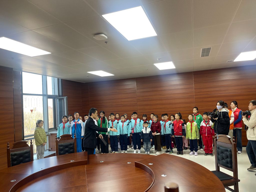 带着对法院工作的疑问与好奇,孩子们在工作人员的带领下依次参观了候审大厅、网络审判庭、审批庭等,法官为孩子们介绍了审判庭的席位设置与开庭程序,以通俗易懂的话语讲述了国徽、法徽、法袍、法槌的象征和意义。