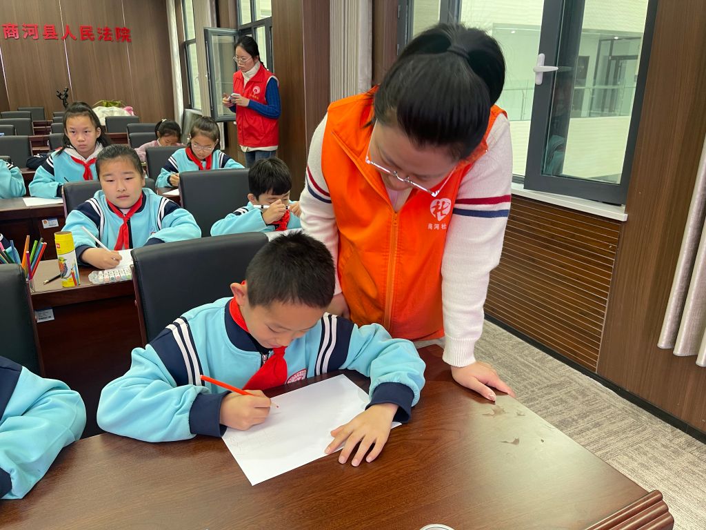 参观结束后,在社工的带领下,小朋友们纷纷拿起画笔,记录下参观法院的所见所得,每一幅画都仿佛在诉说着他们与法治的一次近距离“对话”。