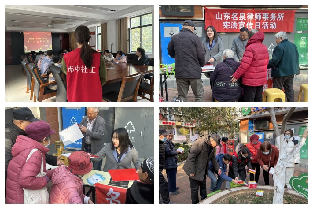 2024年12月4日是第十一个国家宪法日,为宣传习近平法治思想和习近平总书记关于宪法的重要论述,紧密结合“八五“普法规划实施,深入宣传宪法,弘扬社会主义法治精神,七里山街道社工站联合山东名泉律师事务所、七西社区在活动室进行了普法讲堂,在孔子像广场开展了普法知识宣传活动。