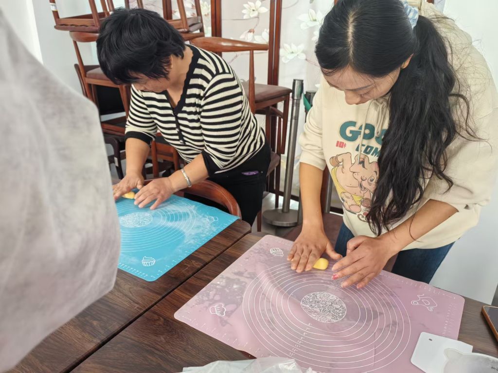 在制作过程中,爱家家政工作人员耐心地指导居民们如何揉面、如何配色、如何造型,帮助居民们解决遇到的问题。大家积极参与,发挥自己的想象力和创造力,将一个个普通的面团变成了一朵朵美丽的花馒头。