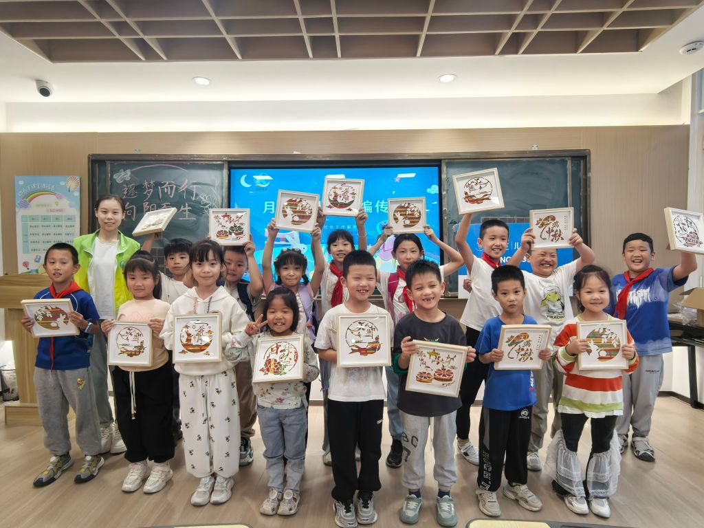 本次活动服务辖区儿童16人,以中秋传统节日为契机,传承和弘扬中秋节团圆、和谐等文化内涵,通过让辖区儿童亲身体验非遗竹编画的制作过程,进一步激发辖区儿童对传统文化的兴趣与热爱,让孩子们在欢乐的氛围中感受家庭和社会的温暖,强化文化自信与民族自豪感的同时,也为辖区儿童搭建社区交往平台,在互动中发展同辈友谊,培养他们的动手能力、创造力和团队协作精神。未来,大桥街道社工站将持续关爱辖区儿童群体,开展多元化社区儿童服务,培养辖区儿童群体成长为有文化底蕴、有民族自豪感的新一代。