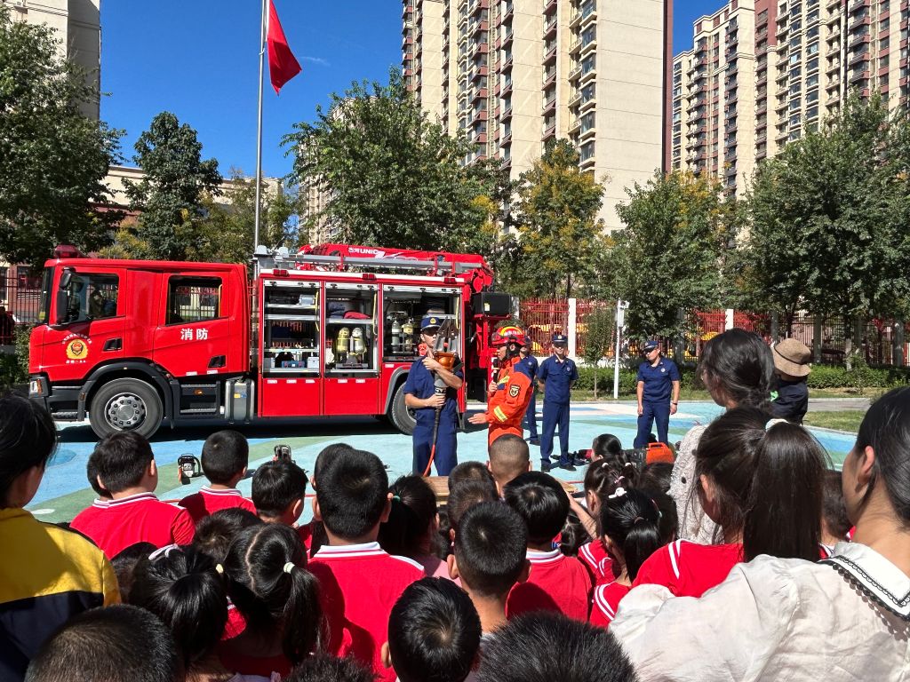 伴随着孩子们热情的欢呼声消防车开进校园,消防员们穿着功能不一的消防服和孩子们亲密接触,用实操和通俗易懂的语言向孩子们讲解了火灾事故的危险性,强调了火灾预防的重要性,教授了孩子们如何拨打消防电话、快速自救逃生等实用技能,助力儿童树立消防安全意识,让他们懂得如何保护自己。社工在现场积极引导孩子参与消防互动,认识各种消防工具,让孩子们通过轻松、愉快的互动一起感受消防安全的重要性。