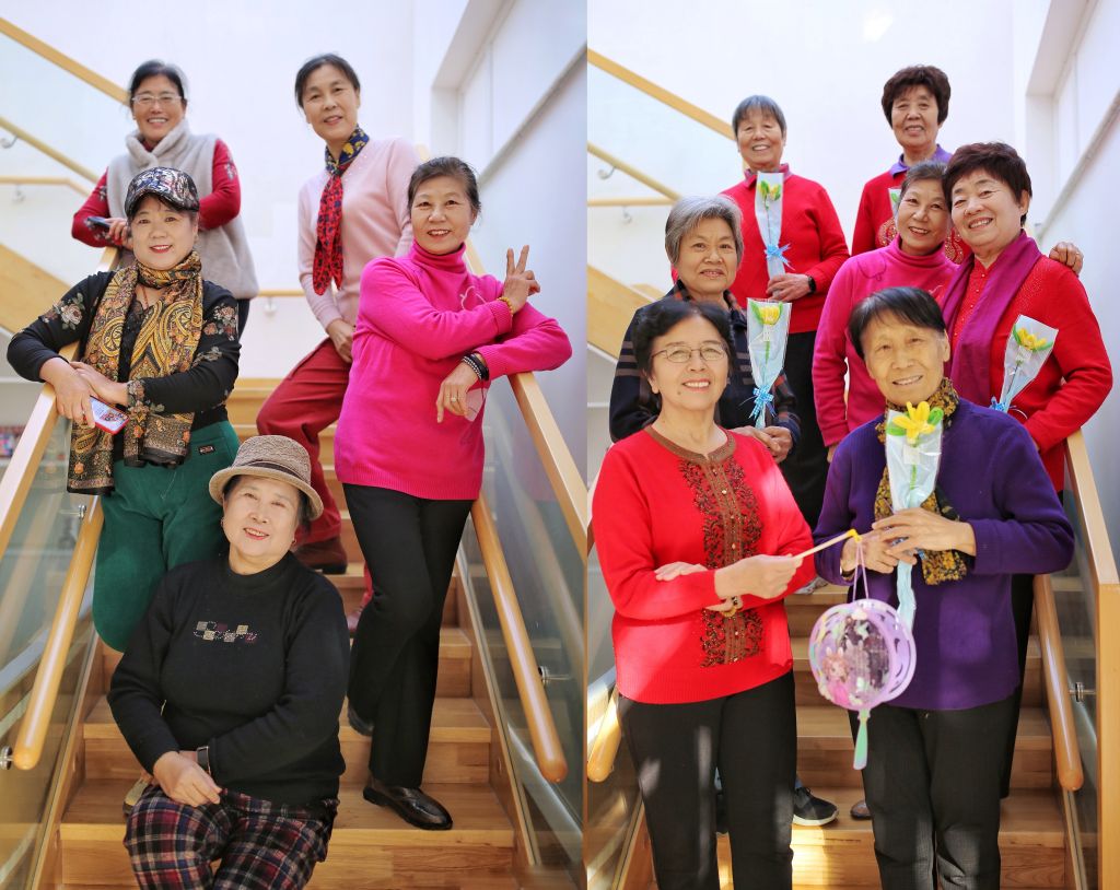 社区的老友们三五成群,彼此挽着手,脸上洋溢着真挚的笑容。他们或是多年的邻居,或是志同道合的伙伴,在这一刻,共同在镜头前留下了珍贵的友谊见证。社工们也积极地穿梭其中,协助李老师安排站位,同时指导各社区社会组织带头人摆出最佳的动作。