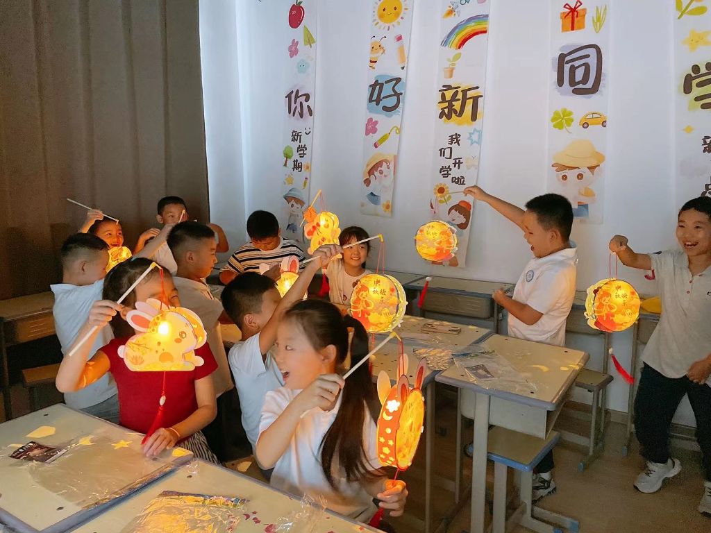 最后的“亮灯”仪式,让孩子们一下沸腾了起来,看着自己亲手制作的灯笼在手中闪闪发亮,过节的美好氛围瞬间满溢,给孩子们留下了深刻印象。