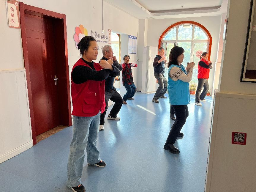 活动开始前,社工带领老人们进行健身养生操八段锦的练习。八段锦凝聚古老的健身智慧,简单八式,调和气血、疏通经络,松静自然间强筋健骨,一招一式里通经活血。八段锦以独特的动作和呼吸法,为老人带来活力与健康。