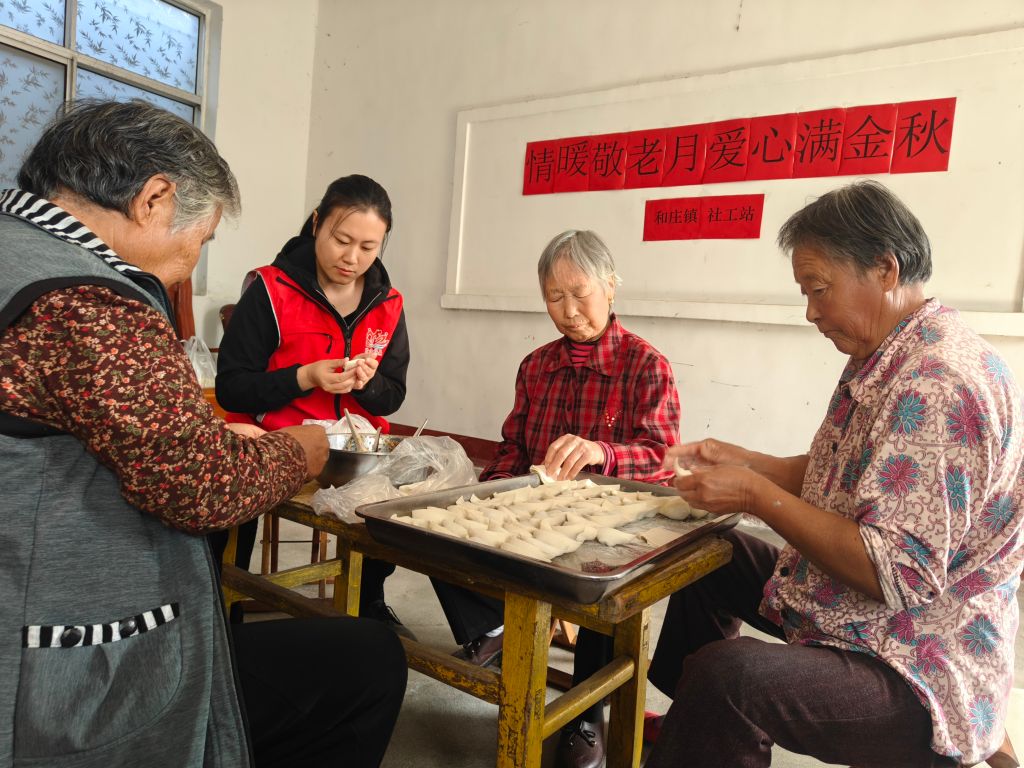 活动当天,社工们早早地来到了北麻峪村幸福院,老人们也兴致勃勃地参与到活动中来,他们和社工一起动手,包出了一个个形状各异的水饺。社工们一边包水饺,一边与老人亲切交谈,询问他们的生活状况和身体情况,倾听他们的故事和心声,老人们脸上洋溢着幸福的笑容,现场气氛热烈而温馨。