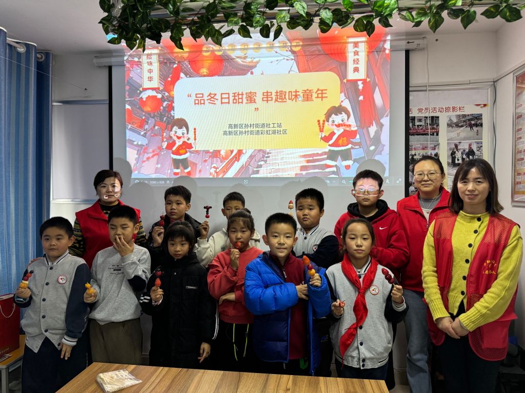 近日,孙村街道社工站与济南市幸福益工社会工作服务中心一起深入雅郡南区和彩虹湖社区,分别开展了一场儿童冰糖葫芦制作活动,为寒冷冬日增添了一抹温馨与甜蜜。两场活动共服务了辖区40余名儿童。