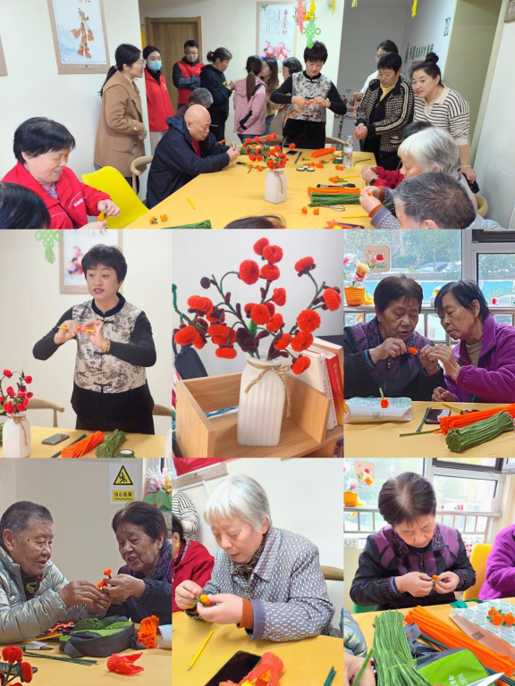 培训现场,老年大学的老师首先向组员展示本节课“柿柿如意”手工制作成品,让大家了解到此次课程主要学习的内容。授课过程中,老师耐心细致地讲解,从手工制作的基本技巧到复杂工艺的要点,都毫无保留地传授。社工及时进行引导辅助,老人们认真聆听,当场实践,即使是那些手指关节不是特别灵活的老人,也全神贯注地投入其中,大家齐聚一堂相互学习,相互帮助,社区里充满了浓厚的文化氛围和温馨的气息。最终,在大家共同协作下,一束束圆润诱人的小柿子挂满枝头,大家笑逐颜开,纷纷表示这样的活动非常有意义,他们因为手工爱好聚在一起,再请专业老师进行指点,更加增强了他们活动的创造力,他们要好好精进技能,争取让这些手工艺品成为了社区对外交流的特殊名片,展示出路劲东城社区老年人积极向上的精神风貌。