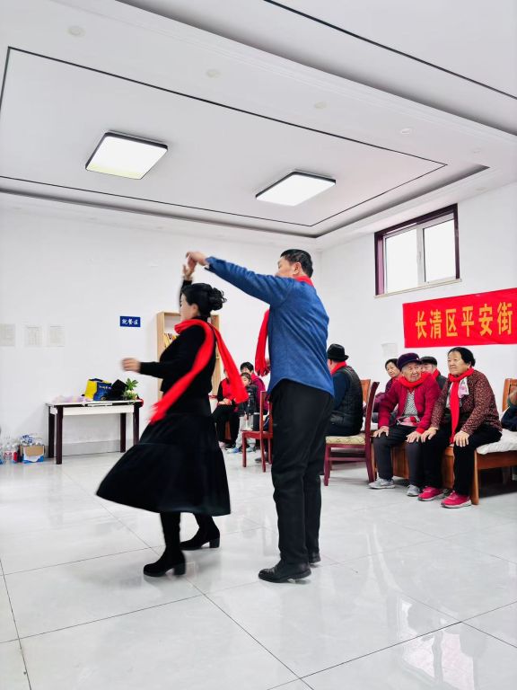 上午九时许,联欢会在欢快的音乐声中拉开帷幕。社工站负责人热情洋溢地向老人们致以节日的问候和祝福。紧接着,精彩的节目轮番上演。一群平均年龄超过六十岁的阿姨们带来了活力四射的舞蹈《好运来》。她们动作整齐划一,脸上洋溢着自信的笑容。欢快的节奏、优美的舞姿,瞬间点燃了现场的气氛,老人们纷纷鼓掌叫好。