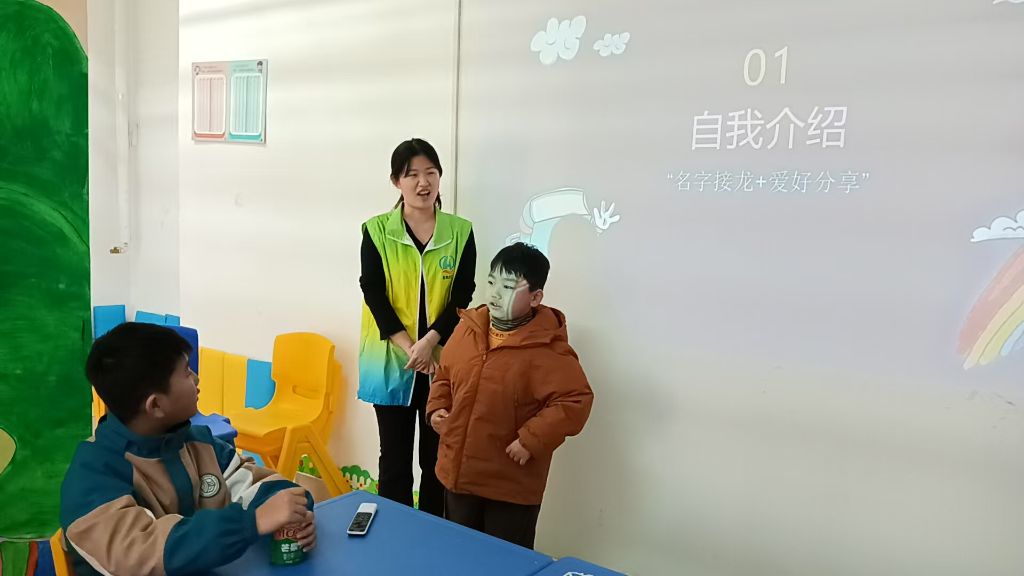 活动伊始,社工精心策划了“名字接龙+爱好分享”的自我介绍游戏。孩子们围坐在一起,起初还有些羞涩,但在社工的热情引导下,逐渐打开心扉。每个孩子依次介绍自己的名字和爱好,后面的孩子不仅要说出自己的信息,还得重复前面孩子的内容。在这个过程中,孩子们的注意力高度集中,现场充满了欢声笑语。通过这个游戏,孩子们快速熟悉了彼此,陌生感渐渐消散,轻松愉快的小组氛围悄然形成。