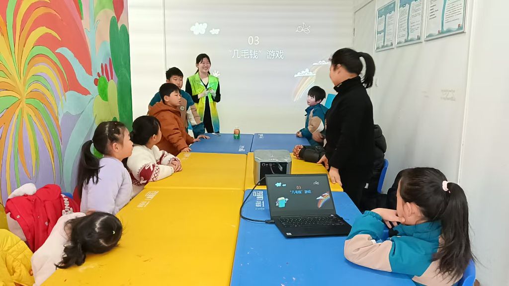 紧接着,“几毛钱” 游戏将活动现场的氛围烘托至顶点。欢快的旋律骤然奏响,孩子们屏气敛息,全神贯注。待音乐戛然而止,社工报出一个钱数,刹那间,孩子们仿若训练有素的士兵,迅速依据钱数组队站定。游戏进程里,孩子们默契协作、互帮互助,有孩子为促成团队成功组合,热情呼喊身旁的小伙伴,整个现场满溢着温馨与欢乐,恰似春日暖阳洒满每个角落。这场游戏不仅让孩子们迈出了交流互动的第一步,更在无形之中,悄然培育了他们的团队协作意识,让团结的种子在孩子们心间生根发芽。