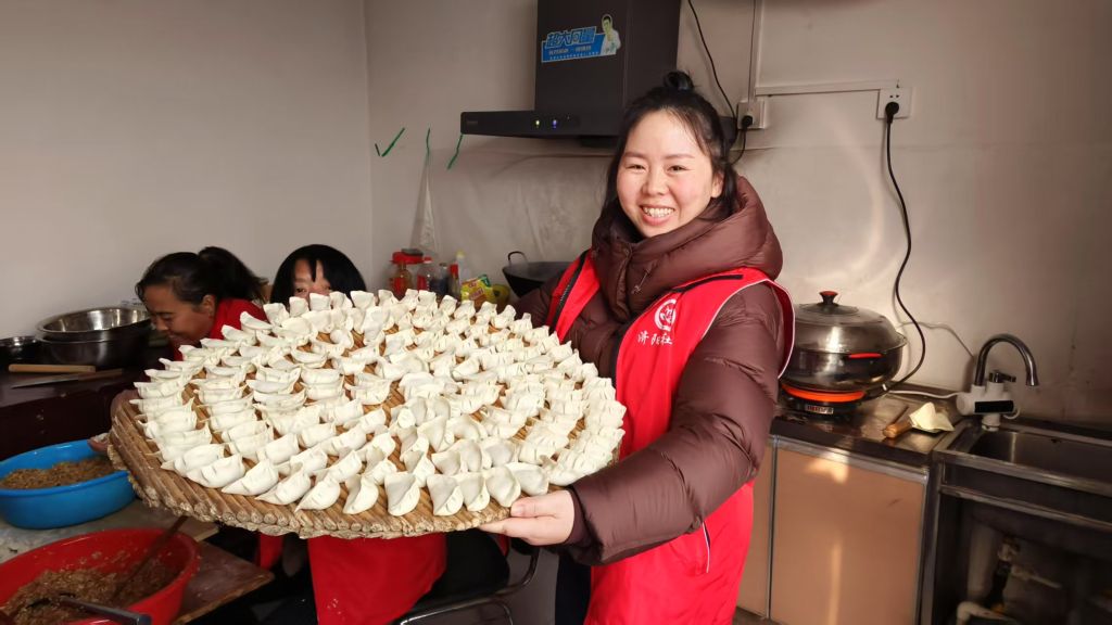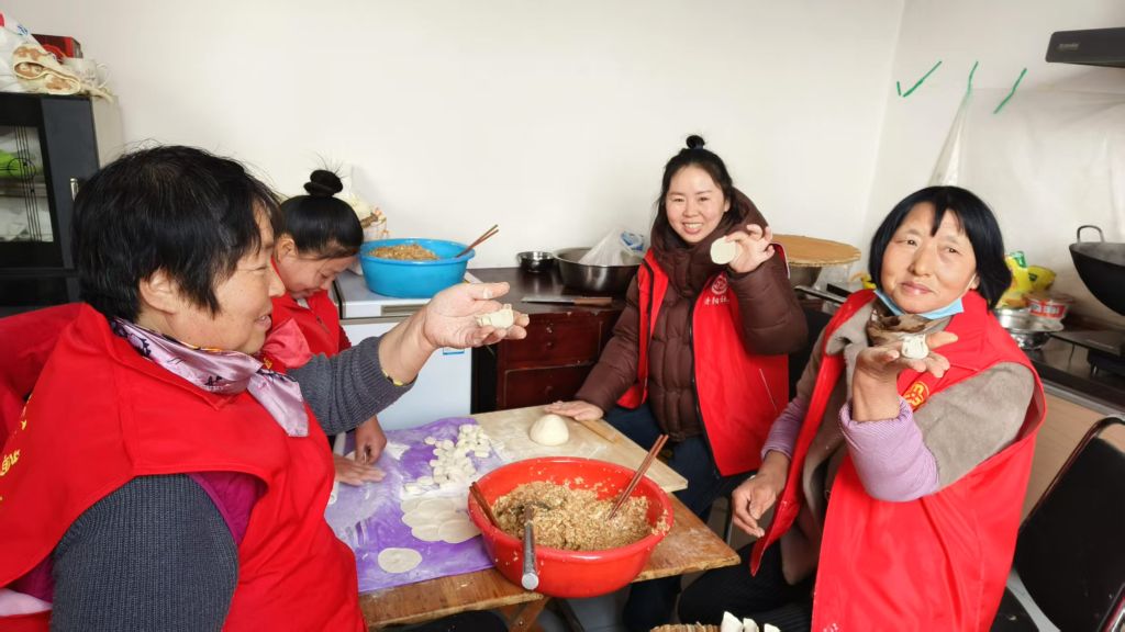 随后,社工来到幸福院食堂包饺子,准备就绪后,大家分工协作,擀皮、包饺子个个动作娴熟。经过一个多小时的忙活,一个个白白胖胖的饺子就摆在了大伙儿面前。最后,社工把煮好的饺子送到了老人们的手中,为他们送去冬日的温暖,也带去了邻里的祝福。