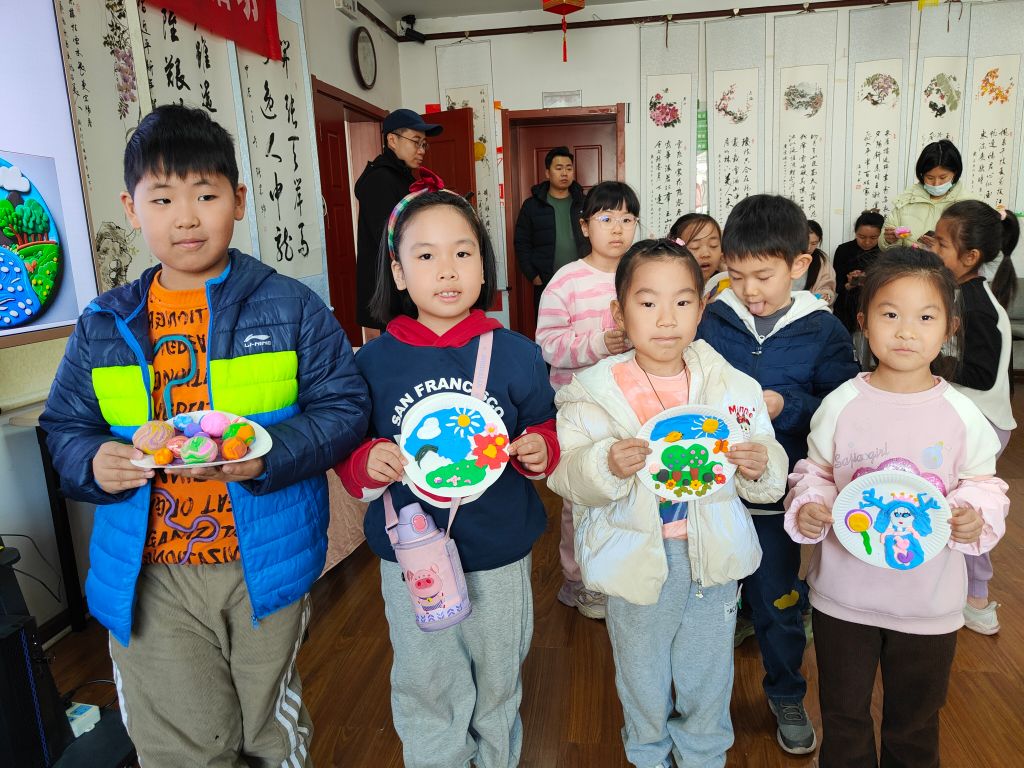 最后,社工引导孩子们想象自己是AI,尽情发挥自己的创意,“生成”属于自己的创意图画,孩子们迫不及待地拿起黏土,发挥自己的想象力,用黏土在盘子贴出自己的“创意黏土画”。有的是星球主题,有的是春天主题...小小的黏土画中,蕴含着孩子们无限的创意。