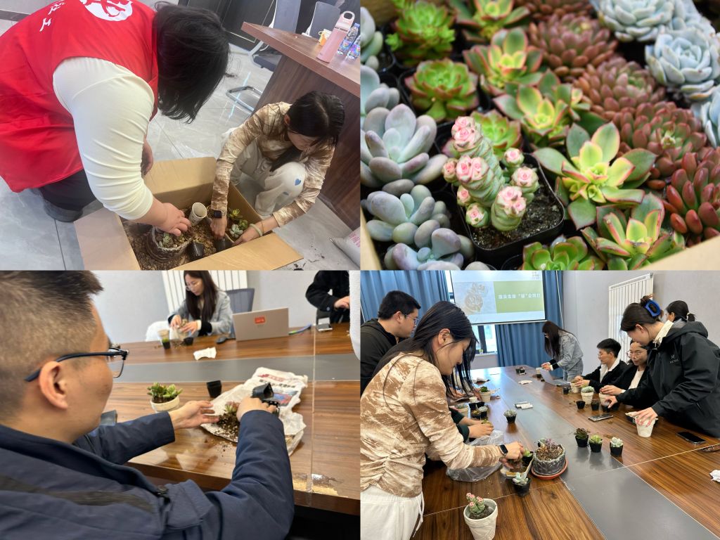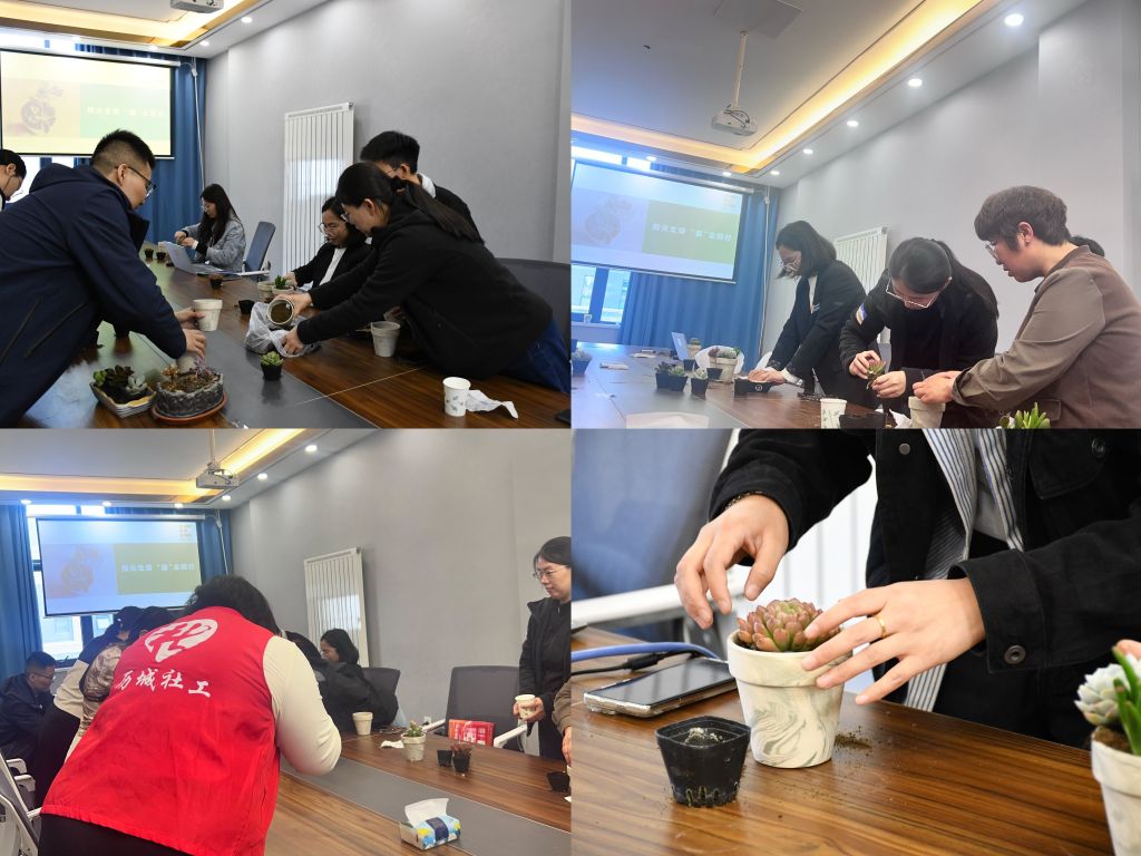 唐冶街道社工站立足社区工作者职业减压需求,于4月9日下午,联合绿地汇社区链接北京银行济南唐冶分行共同开展“指尖绿意·多肉疗愈”园艺治疗减压活动。活动设计主要通过园艺治疗的减压机理与社区工作者工作相适配,精准回应社区工作者群体在高压工作环境下的身心调适需求,让种植的仪式感成为工作间歇的情绪锚点。