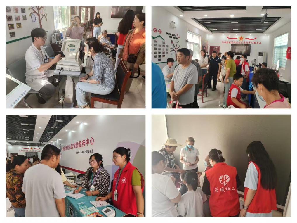活动现场,前来咨询就诊的居民络绎不绝,社工在现场维持秩序,耐心地接待每一位居民群众。医护人员为来诊居民群众“把脉开方”,细致地为他们测血压、中医把脉、骨密度检测、眼底筛查等,认真负责地为他们检查身体,向他们详细普及了关于高血压、心血管疾病等慢性病的相关健康知识,并告知他们相关疾病的注意事项,增强他们的科学防病意识。还对前来义诊的老年人讲解了定期检查身体的重要性,引导他们树立科学、健康、和谐的生活观念,养成健康的生活习惯,加强自身健康管理。