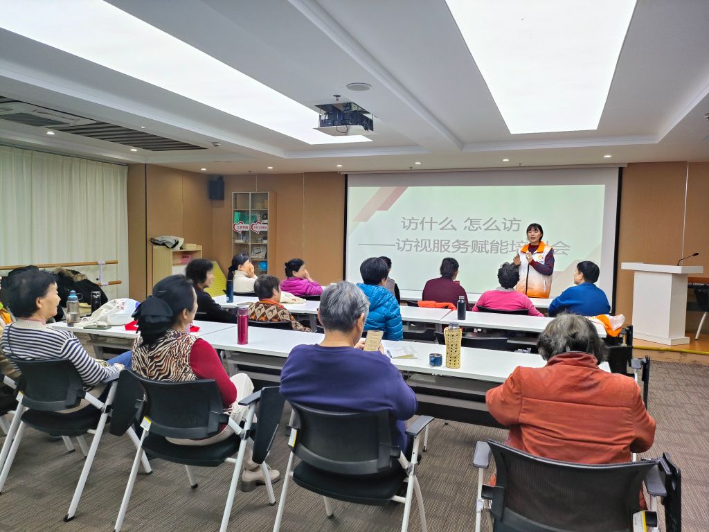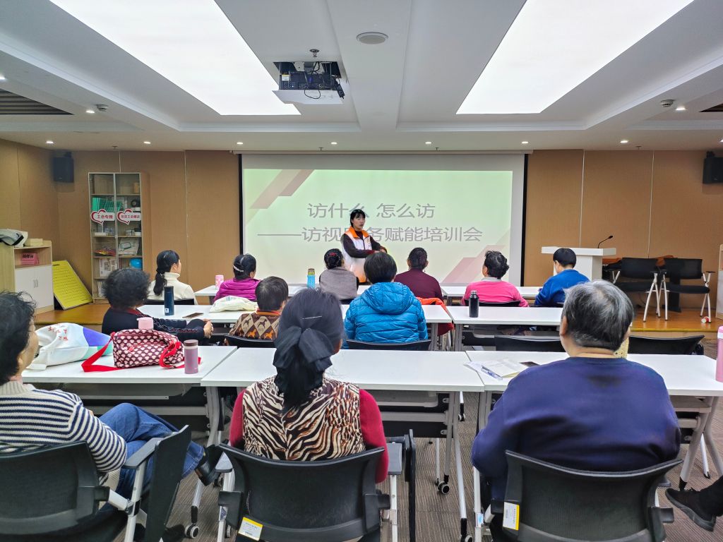 赋能培训增能力。社工站站长李舒通过生动的案例分享与互动式教学,详细讲解了访视服务的各个环节与注意事项。她特别强调,在访视服务过程中,社区社会组织可以秉持“及时响应,灵活应对”的原则:如遇到能够及时满足服务对象需求的情况,应迅速予以回应;如若遇到无法及时满足的需求,则应及时记录并向社区或社工站反馈,随后通过联动各方资源来寻求解决方案,确保每一个访视对象的需求都能得到妥善处理。