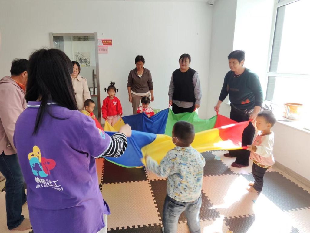 隔代养育已成为我国最主要的育儿形式之一,既有独特的优势,同时也伴随一系列的挑战。槐荫区腊山街道社会工作服务站(以下简称“社工站”)联合泉景园社区于10月10日开展“童心同乐,益老益小”活动,促进幼儿早期认知发展,同时为祖辈照料者提供社交和互助的平台。