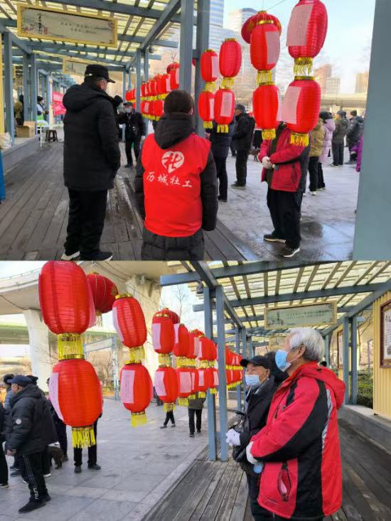 为弘扬与传承中华优秀传统文化,营造喜庆祥和、昂扬向上的社区节日氛围,有效增强居民对社区的认同感与归属感,让辖区居民度过一个欢乐祥和的元宵佳节,2月12日,全福街道社工站联合烟厂社区、桑园北社区开展“我们的节日·元宵节”活动。活动现场,高高挂起的灯楼光彩夺目,下面悬挂的灯谜引得人们驻足思考,大家开动脑筋,沉浸在解谜的乐趣中。一旁,人们围坐在一起煮汤圆、吃汤圆,欢声笑语不断。敲锣打鼓的声音节奏明快,扭秧歌的队伍步伐矫健,舞者们身着鲜艳服装,随着《好日子》《喜乐年华》等欢快的音乐尽情舞动,还有红歌联唱环节,激昂的歌声将活动推向高潮。