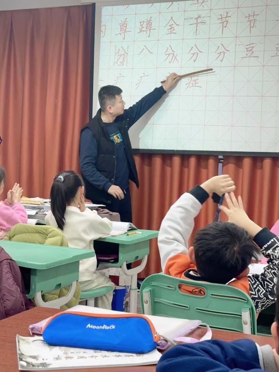 秉持弘扬传统文化、丰富居民精神世界的初衷,社工站还特邀书法爱好者宋老师,在国际志愿者日期间开设书法公益课堂。志愿者们化身课堂助手,热情引导居民有序入座,分发笔墨纸砚。宋老师从书法的基础握笔姿势讲起,他手持毛笔,以身示范,手指灵活地转动笔杆,向居民们展示如何做到 “指实掌虚”。
