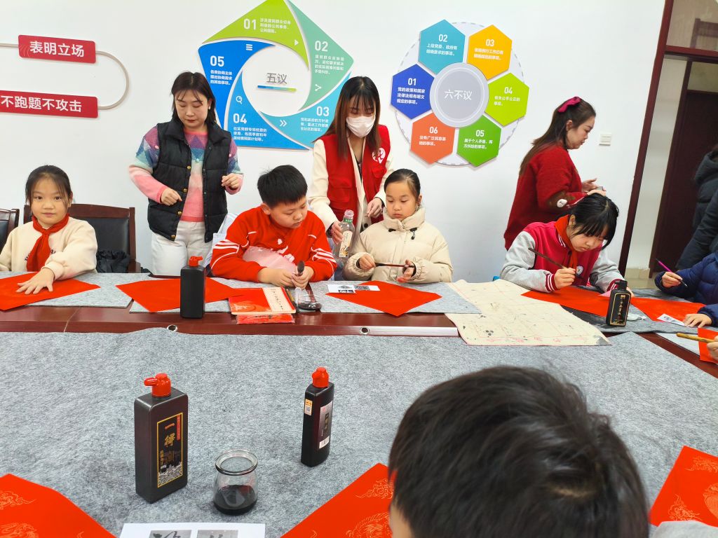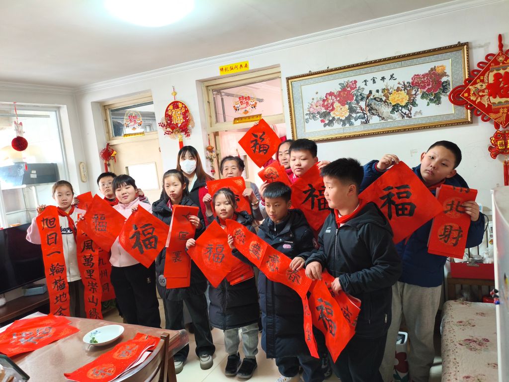 本次志愿服务,王官庄街道社工站招募到27名有书法功底的少先队员,为九区的孤寡老人、困难群体书写蛇年贺岁春联与福字。社工向小志愿者们传达了爱老、助老的志愿服务精神,并向大家梳理了活动流程,在孩子们的热忱回应下,本次活动正式开始。