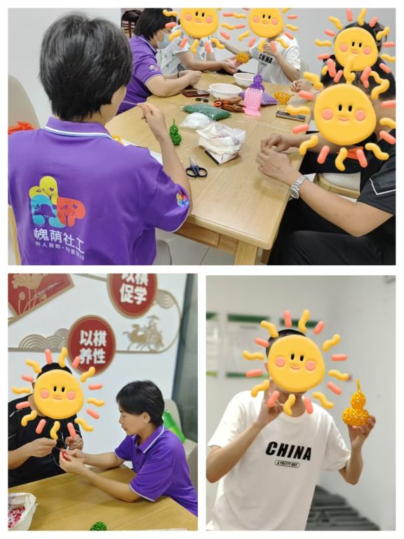 自小组活动启动以来,辖区内七位残障人士及家属加入到了这一充满意义的活动中来。经过数周的专业指导和实践练习,学员们不仅掌握了包括苹果、葫芦、金猪等多种手工作品串珠技能,更重要的是收获了自信与独立生活的能力。这些成就背后离不开每位参与者坚持不懈的努力以及来自社区内外志愿者们的无私奉献。