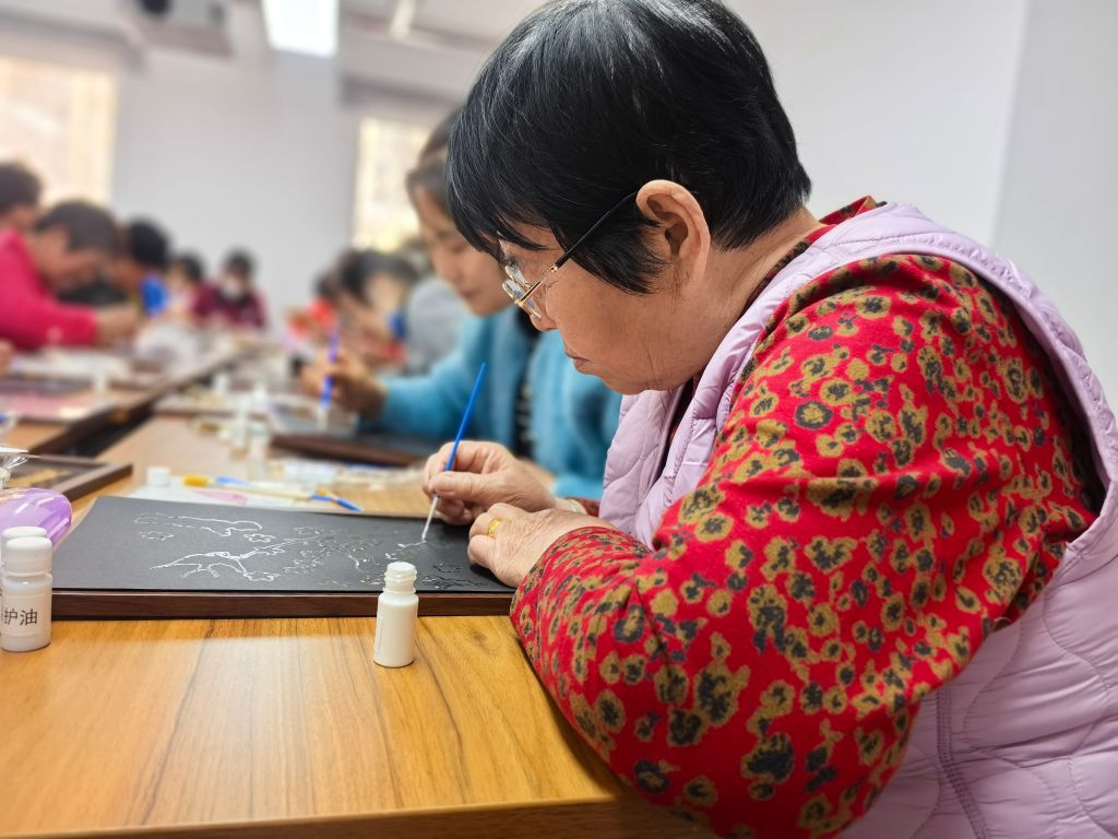 80岁的李奶奶平时爱好不多,子女又不在身边,起初她有些拘谨。在社工的引导下,李奶奶慢慢融入活动,她专注地涂抹着,努力在框架范围内涂抹均匀。当看到自己的作品逐渐成型,李奶奶脸上露出了久违的笑容,还主动和身边的老人交流心得。经过两个多小时的努力,一件件充满创意和温情的手工作品摆满了桌面。老人们拿着自己的作品合影留念,喜悦之情溢于言表。