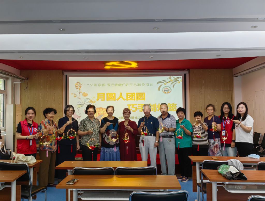 在本次活动中,居民们建立了新的友谊和支持网络,社工引导大家边做边聊,分享家庭趣事和过往中秋的记忆,现场气氛温馨而和谐,邻里间的情感在不经意间得到了升华。经过一上午的努力,一盏盏充满爱意的中秋花灯在居民们的手中诞生。它们不仅是节日的装饰,更是情感的载体,承载着社区老年居民们对美好生活的向往,也承载着社工们的希冀和祝福。