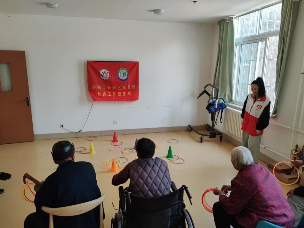 双泉镇社工站以提升孤寡老人社交重建和心理支持为目标,联合双泉镇敬老院,共同开展“泉心为老,点亮心窗”孤寡老人情感陪伴小组。4月29日,第二节小组活动圆满完成。本次活动以“传承乡土文化记忆,重温趣味套圈”为主题,通过组员之间互动游戏,为其提供情感表达的契机,提升幸福感与归属感。