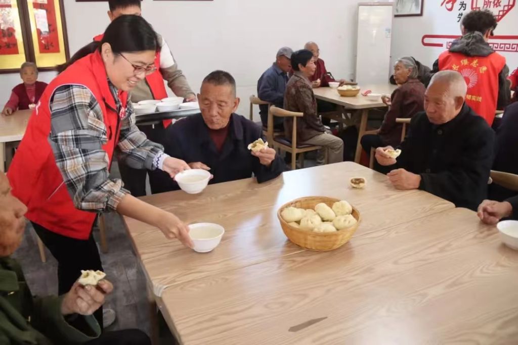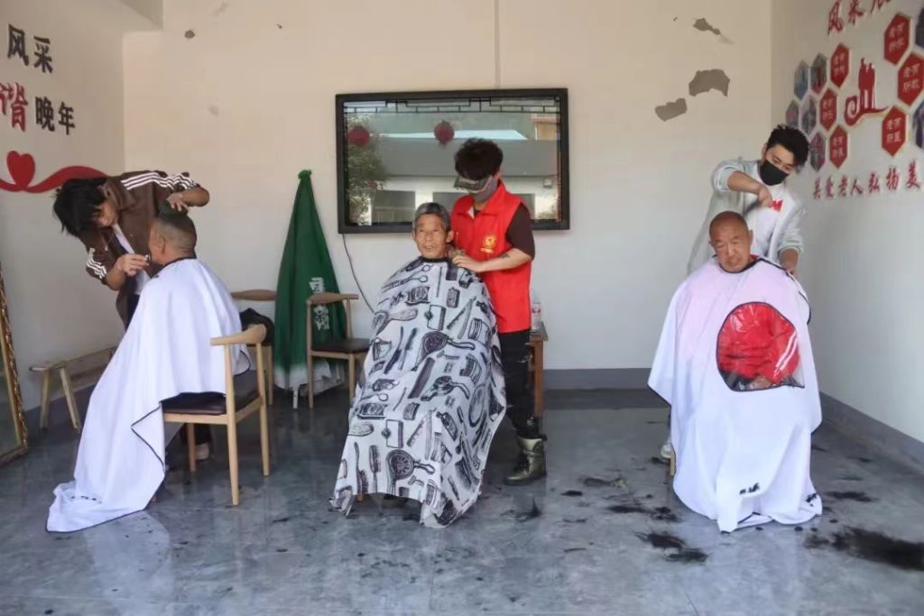 活动当天,阳光正好,“爷爷奶奶,你们身体好吗?”“生活咋样,”“吃住都好吧?”......社工和志愿者一同走进幸福院,与老人们亲切交谈起来,询问老人们的生活起居和身体状况,认真倾听老人们分享的生活点滴,并叮嘱老人们要注意身体,保持乐观心态。此时刘家幸福院内欢声笑语,洋溢着浓厚的节日氛围。社工和志愿者们迅速分工,有的负责为老年人理发,有的则忙着准备制作可口的包子。理发区,志愿者运用娴熟的手艺,耐心地为每一位老人修剪发型,让他们以更加整洁、精神的面貌迎接重阳佳节。老人们看着镜中的自己,脸上露出了满意的笑容,纷纷称赞志愿者的手艺和服务。与此同时,厨房内也是一片忙碌的景象。社工和志愿者精心挑选食材,和面、调馅、包制,每一个步骤都倾注了他们对老年人的深情厚意。当一盘盘热气腾腾、香气扑鼻的包子端上桌时,老人们围坐在一起,品尝着这份来自社会的关爱与温暖。他们边吃边聊,脸上洋溢着幸福的笑容。