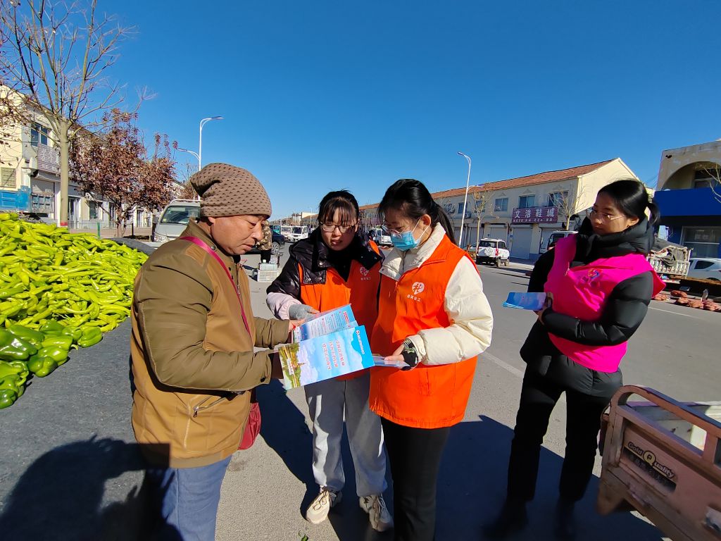 商河县韩庙镇社工站联合司法所、妇联志愿者在镇商业街开展“法治宣传进集市 普法学法入人心”宣传活动。
