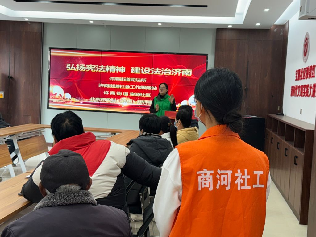 许商街道社工站联合司法所,邀请北京市盈科(济南)律师事务所在宝源社区开展”弘扬宪法精神、建设法治济南”宣讲活动。宣讲中,盈科的律师分别从宪法的地位、意义、内容、发展历程等方面向社区居民进行知识宣讲,并通过真实案例警示群众在任何时候都要依法办事,以理性、合法的形式表达自身诉求。