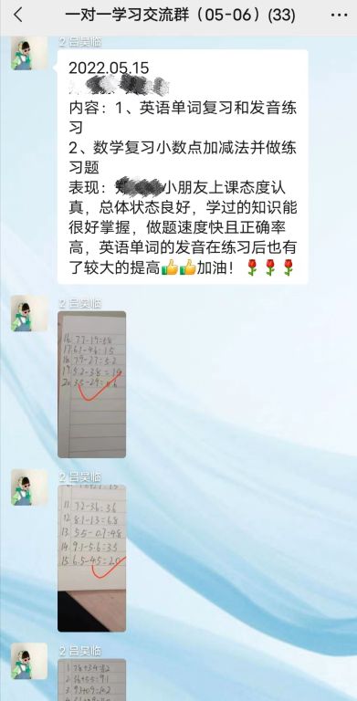 经过承接机构协调,最终确定山东财经大学青年志愿者协会大学生志愿者为垛石街道刘台村六年级学生刘钰童(化名)和回河街道小何村三年级的郑燕(化名)提供线上“一对一”课业辅导志愿服务。每周六、周日上午9:00-11:00儿童们都会和志愿者们在线上“相见”,他们或通过微信聊天,或通过腾讯会议,或通过语音视频共同学习。每次辅导志愿者们都会用心准备,儿童们会准时上课,课程中他们积极互动,把每个知识点学会、弄懂,课后志愿者会针对儿童的表现进行总结点评,共同总结学习成效。