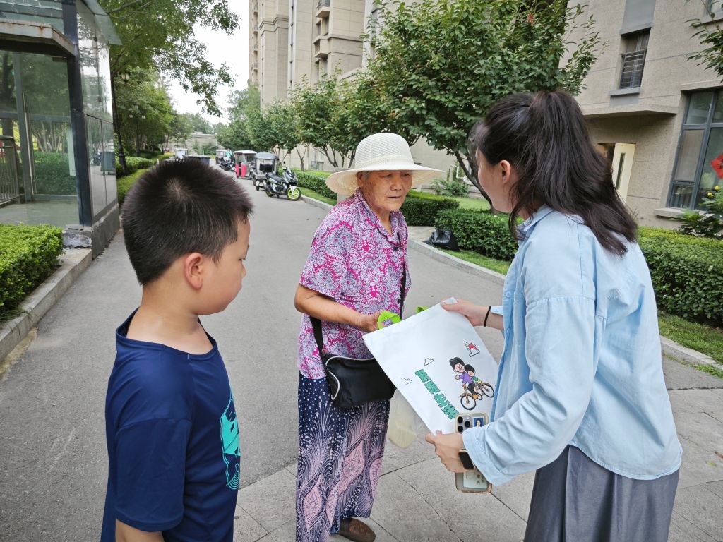 绘画结束后,社工组织孩子们来到小区的活动广场把绘制好的帆布包赠送给小区居民并向他们宣传环保重要性。居民们对孩子们的创意和热情赞不绝口,纷纷接过帆布包,表示会珍惜并使用这些充满爱心的环保作品,孩子们脸上洋溢着自豪的笑容,纷纷表示将继续参与环保活动,用实际行动为社区的绿色生活贡献自己的力量。
