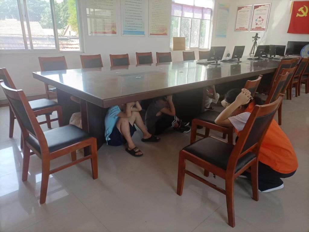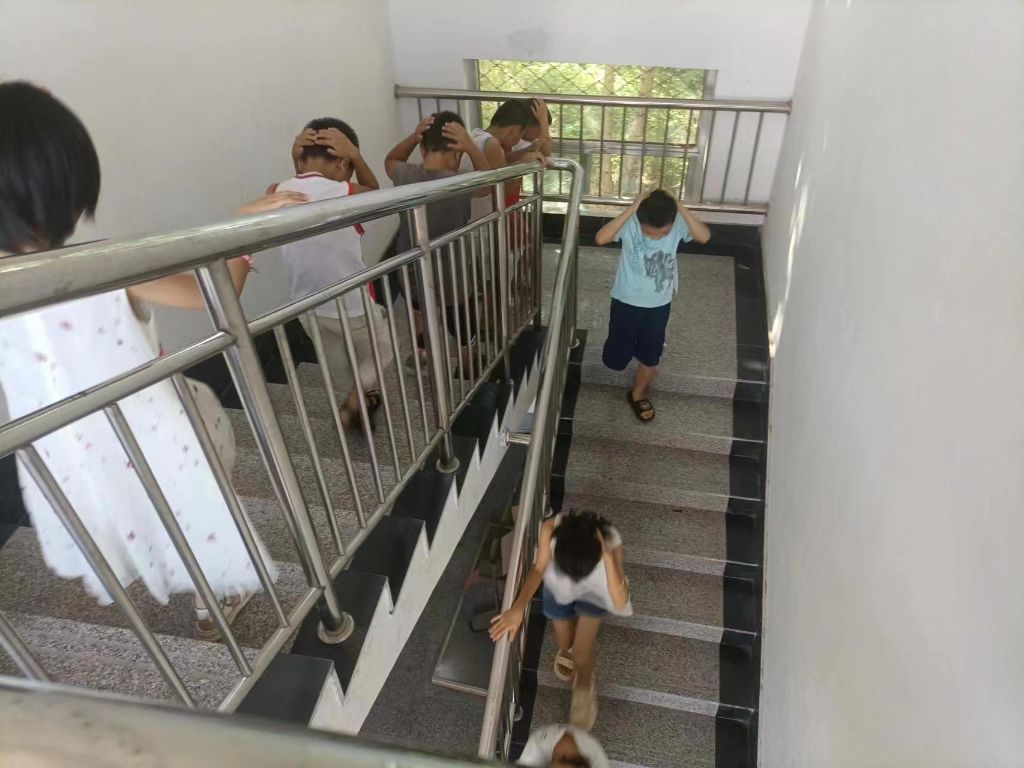 “纸上得来终觉浅,绝知此事要躬行",为了巩固学习成效,小张还组织大家进行了逃生演练。通过演练,孩子们不仅得知了如何有效避震,更明确知晓了避震过程中不要惊慌,听从指挥,保持安静,动作规范,按线路有序避震。