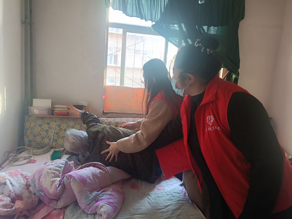 11月15日下午,东风街道社工站的社工们来到世纪园社区的张奶奶家,社工们了解到情况,老人家里有位精神障碍的儿子,老人独自一人承担家庭重担,照顾儿子衣食住行,自己腿部也有残疾,社工们一行人给张奶奶家带去了慰问和关怀,与老人促膝交谈,详细了解他们的日常生活及身体健康情况,并且与他们聊天疏解心情,开导他们要用积极的态度面对生活。