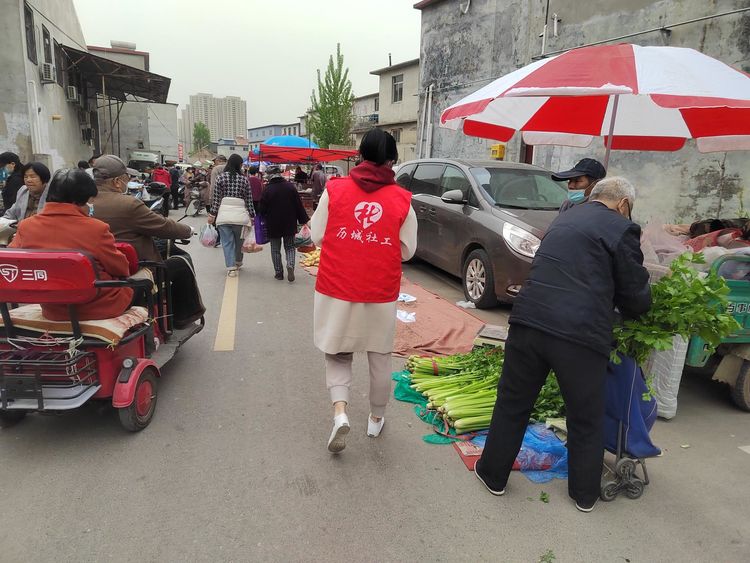 在荷花路街道堰头集,社工向来往的群众发放健康知识宣传资料,为辖区老年群众提供健康咨询,介绍老年人生活常见的慢性病预防及治疗知识。同时宣传科学的衰老观念,帮助老年人认识到出现各种慢性疾病以及功能退化是增龄性改变造成的,也是必然的生理过程。