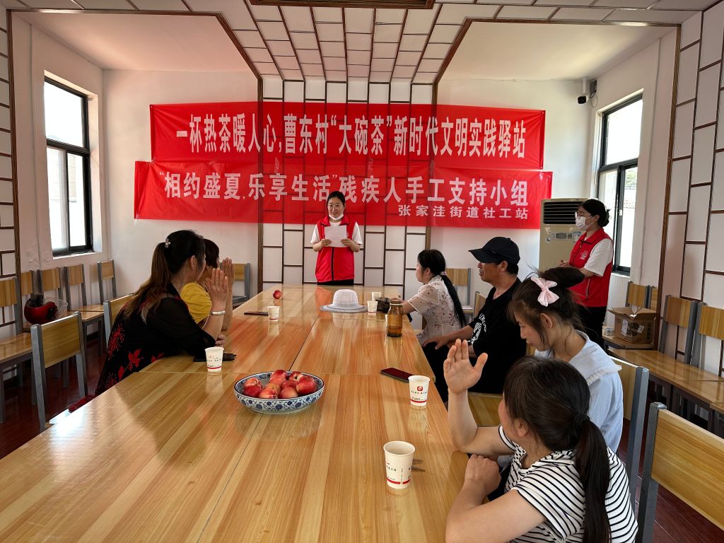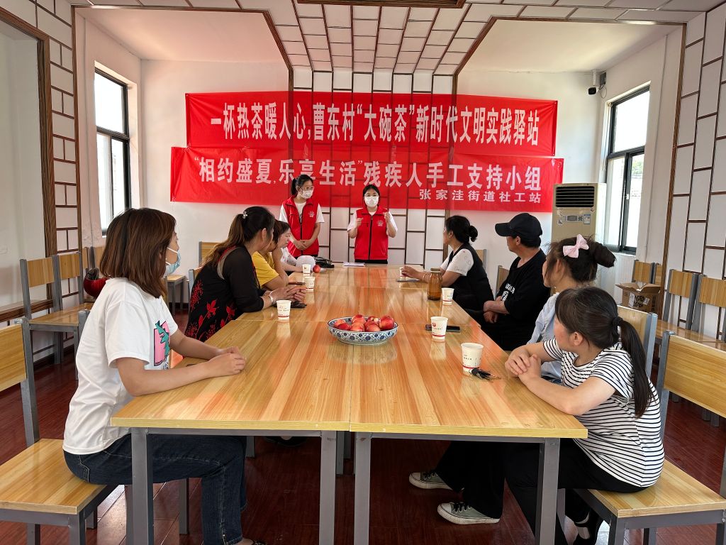 2023年6月21日,端午节来临之际,张家洼街道社工站在曹东村组织开展了“相约盛夏,乐享生活”残疾人手工支持小组。