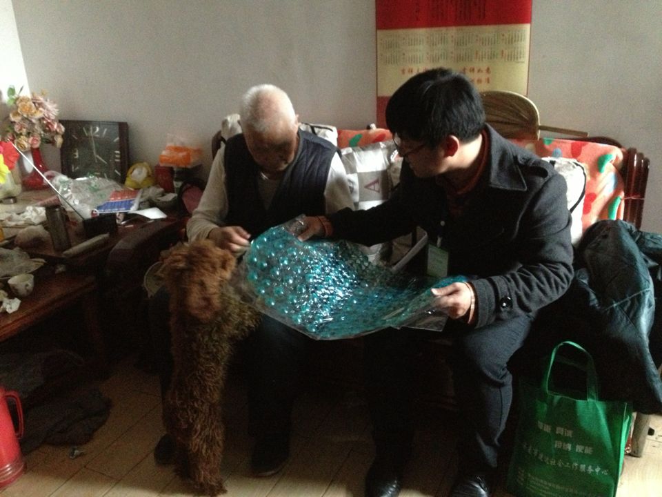 建达“银龄安居”服务项目:福康计划之社工为空巢老人送“安全防滑垫”