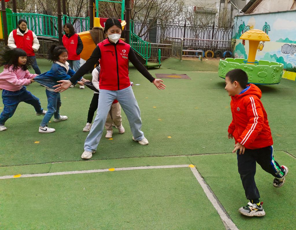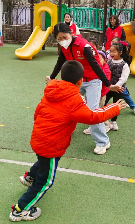 活动伊始,志愿者为大家讲解了活动注意事项以及活动纪律等,并有序地带领大家做“老鹰抓小鸡”游戏,儿童玩的不亦乐乎,随后,社工也随即加入小朋友的行列中,和他们一起玩游戏,也在其中回味童年的点点滴滴。在活动过程中,社工帮助小朋友打开心扉、勇敢的与其他小朋友一起玩耍,正确地认识自己、发扬自己的优势,提高儿童的自我认知和行为能力建设。