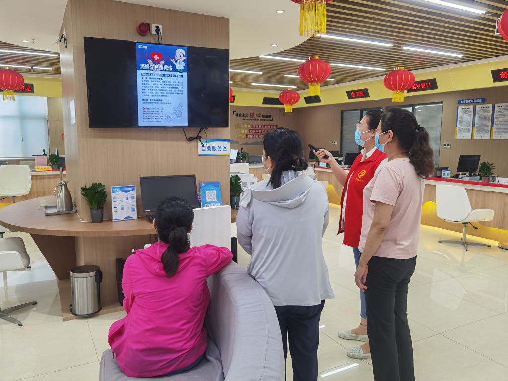 社工在榆山街道便民服务大厅播放应急救护视频,引导前来办理业务的群众在排队过程中学习了解到急救知识。随后,社工们走出室内,到了人员较多的广场、商业区、超市门口进行了应急救护知识单页的发放,并为大家讲解心肺复苏急救步骤、海姆立克急救法、献血对人体健康的好处等生活常识及急救知识。居民纷纷表示,学到急救技术不仅可以帮助身边的亲人、朋友,在发生紧急情况时,也可帮助更多的陌生人,要加大类似的宣传,让所有人都掌握这些最基本的急救技巧。