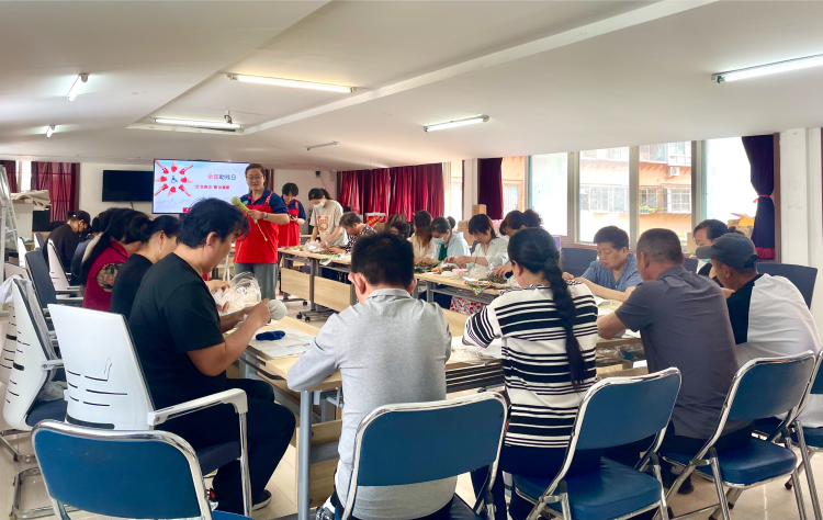 珑璃手制志愿团的宋欣老师讲解了艾草锤的功效和制作步骤,耐心地教授每一位伙伴,大家纷纷提出好点子、好想法如何能让手工作品更精致。看到行动不便的伙伴,周边的伙伴十分热心地给予了帮助和关怀,整个活动现场其乐融融。