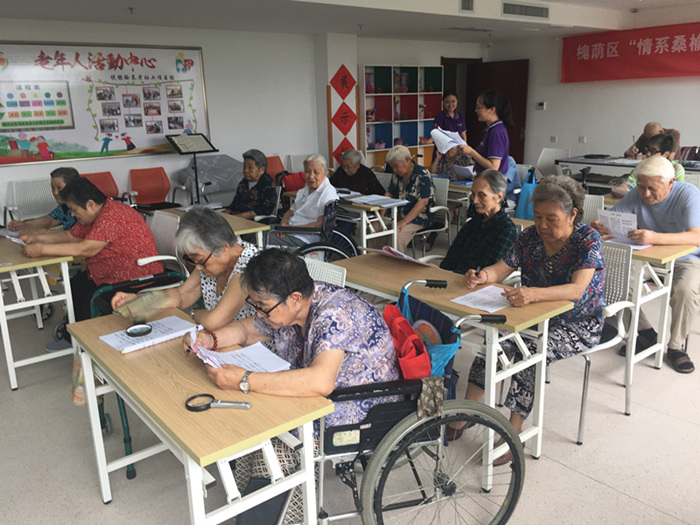 “关关雎鸠,在河之洲。窈窕淑女,君子好逑。”上午还不到九点,老年大学就传来老人三三俩俩念诗的声音。自诗歌学习小组组建已经四个多月了,老人们已把其当成了自己生活的一部分,每到周四,不等社工去通知就自觉地早早来到老年大学等待活动开始。8月16日上午9点悦银龄养老社工项目组在福利中心三楼老年大学开展了“桃之夭夭,灼灼其华”诗歌学习活动。