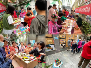 在公益市集中,传统手工制作、社区基金项目宣展、民俗游戏体验、公益集市摊位等展位布满了长廊。投壶、制作中秋祈福灯笼、绘巧手团扇、国风书签等摊位受到了现场居民们的热烈追捧。在传统手工制作区体验着灯笼制作与手工巧绘;在民俗游戏去体验着投壶的乐趣;在社区基金和义卖摊位前,陈列着残障志愿者的手工物品,大家各凭己力为社区公益奉献着爱心。