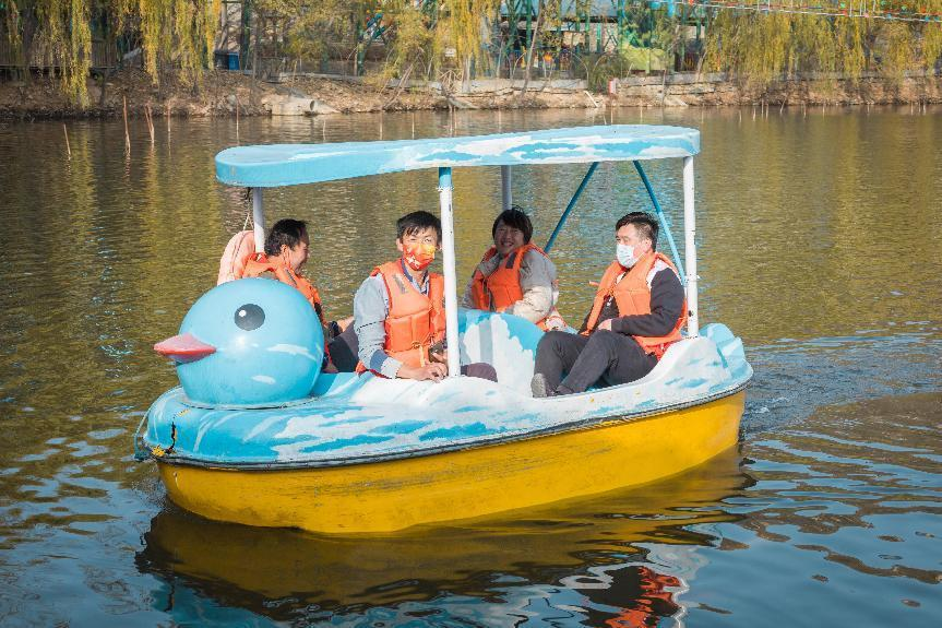 万德社工站和志愿者们推着轮椅带着残疾人朋友们到马套村有名的将军山参观游玩,在前往将军山景区的道路两侧,数十幅制作精良、画面精美的墙画,将这座泰山脚下的山村装点的艺术气息浓郁,一路走来让大家仿佛沉浸在艺术的殿堂不能自拔。进入园区乘坐了划船。“出来划了船,此生无憾了!”一位无法自己出门的重度残疾人感慨的说。跟他一样这些许久没出门的残疾朋友,感慨家乡的环境变美了,空气变好了,河里的水更清澈了,跟这些残疾朋友一起出来游玩非常开心。