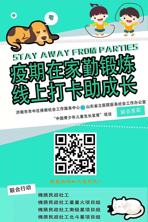 一是社区青少年将运动、学习融在时光里的每一天。为了回应青少年身心健康需求以及学习成长的需求,缓解青少年宅家焦虑和焦躁的情绪,自1月30日起,在机构的帮助下社工“三小星”链接到“中国青少年儿童生长发育”项目和山东省立医院的资源支持,聚焦家长和青少年关心的居家健康和抑制肥胖、助力长高的问题,就青少年日常运动和学习,推出了21天“疫期宅家勤锻炼,线上打卡助成长”线上服务活动。